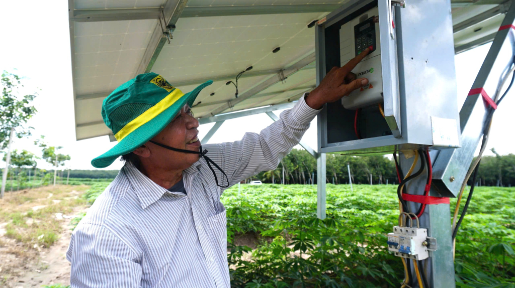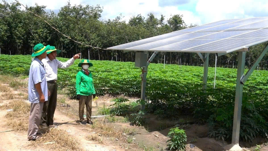 "Since installing the solar power system to run the water pump, we have electricity to irrigate our cassava fields during sunny days. Thanks to this, production costs have decreased significantly, and irrigation has become more convenient," Mr. Vinh shared.